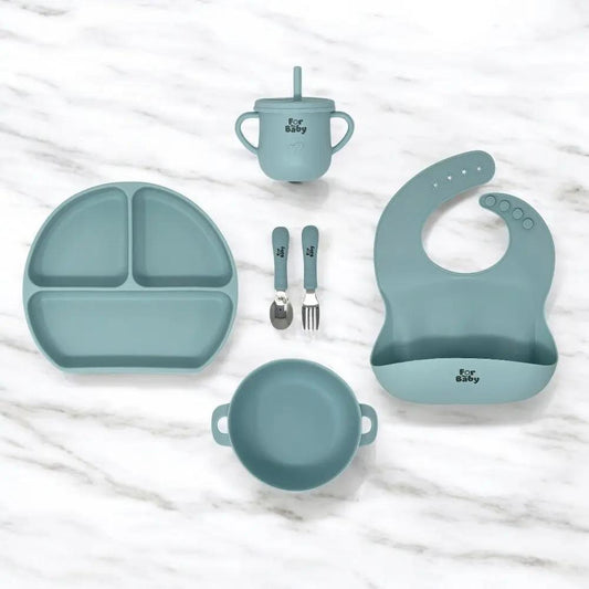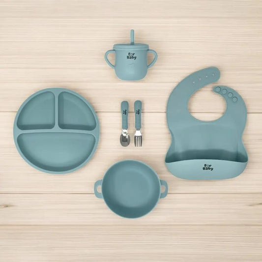 6 Piece Silicone Baby Feeding Set with Round Plate
