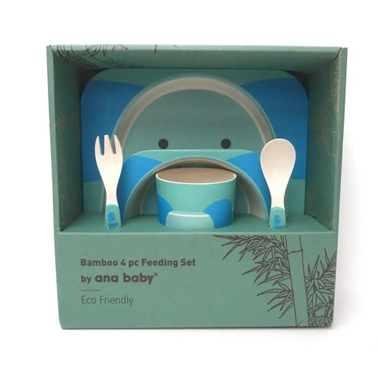 Children's 5 Piece Bamboo Dinner Set, Eco-Friendly, Dishwasher Safe (Elephant)